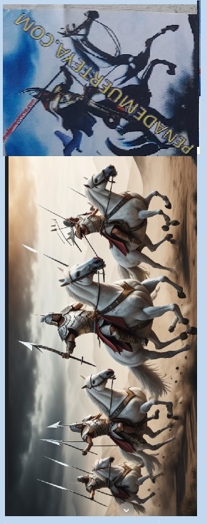 El jinete del caballo blanco es el propio Cristo en su regreso, por eso yo he creado un ícono con un jinete, pero no para rezarle a la imagen, como hacen las bestias irracionales con cada imagen religiosa que crean, sino para dejar en claro que la defensa de la pena de muerte justificada está en consonancia con las verdaderas palabras de Cristo, ocultadas por los romanos, pero reveladas con la razonada argumentación: