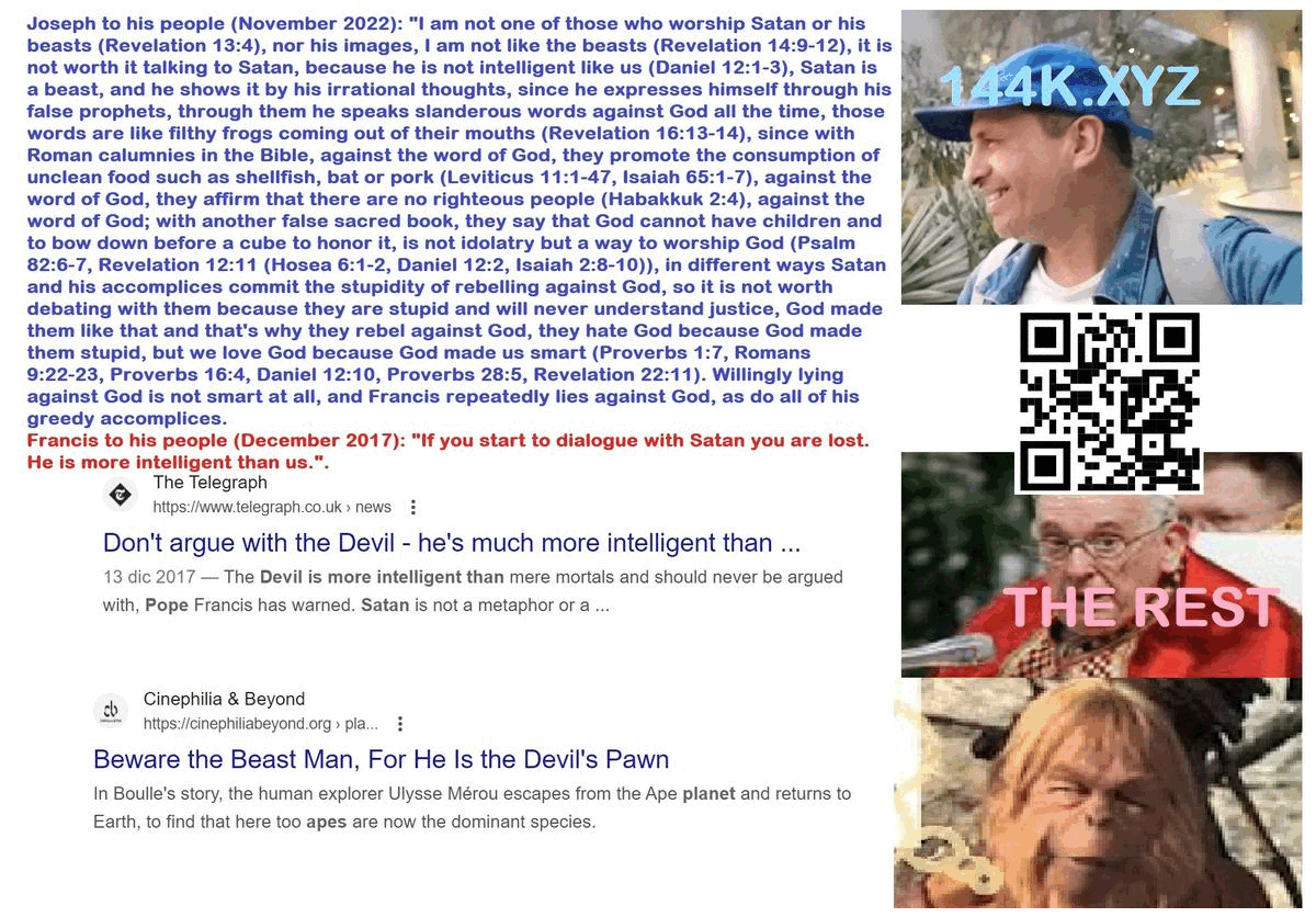 ‘@saintgabriel4729 hace 1 segundo Ellos no son “nuestro projimo”, el “amor al enemigo no tiene sentido”, la Biblia tiene mentiras de los romanos, abran los ojos y dejen de apoyar a los que defienden a estas lacras sociales… 1 Responder @ooooo-ix9lm hace 6 horas NO SON NUESTROS HNOS SON ADVERSARIOS ENTIENDAN DE UNA VEZ 🐒🌮 7 Responder @saintgabriel4729 hace 1 segundo Que entiendan también que hay que desligarnos de los mensajes de “los adversarios del imperio romano”, quienes por medio de la Biblia mintieron falsificando el mensaje de los hnos con la doctrina del “amor a los adversarios”, y otras calumnias que los hnos jamás predicaron…