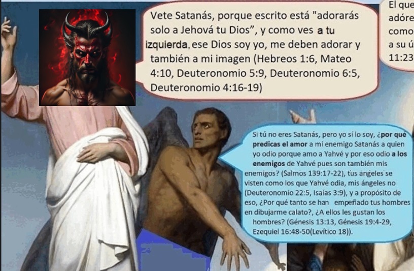 No se confundan, Satanás es malo porque su nombre significa “El testigo falso o el calumniador”, los calumniadores buscan el derramamiento de sangre inocente, por eso Satanás no es bueno, hay muchos en Internet que dicen que Satanás era el bueno, eso no es cierto, eso no tiene sentido, lo que sí tiene sentido es esto, como era de esperarse, los adoradores de Satanás al hombre varonil le han llamado Satanás, lo cual no tiene sentido porque Satanás es el que aborrece la ley de Dios, en cambio el santo ángel ama la ley de Dios y por eso es un hombre de apariencia varonil y que viste como hombre, ya que la ley de Dios ordena lo que Satanás aborrece, y contra lo cual Satanás se rebela, la ley de Dios dice:Deuteronomio 22:5 No vestirá la mujer ropa de hombre, ni el hombre vestirá ropa de mujer, porque abominación es a Jehová tu Dios cualquiera que hace esto. Y Satanás no es un solo personaje, hay muchos Satanases: Shemihaza es el nombre del líder de todos ellos, es el a quién los romanos le pusieron de nombre «Jesús», entre ellos también están Samael, el ángel de Roma, al que los romanos le pusieron un nombre ajeno «Miguel», y Gadriel, el que sedujó a Eva, además un largo etc. El dios Sol invictus es Lucifer, «la luz de este mundo», aquel dios que se complace de los sacrificios humanos en su honor, por eso Isaías profetizó su caída, por malvado, en el fin de los tiempos Lucifer y sus ángeles son vencidos por Miguel y sus ángeles, ¿por qué?, por que a diferencia de Lucifer y sus ángeles, Miguel y sus ángeles sí cuentan con el apoyo de Yahvé en esta guerra: Cuando en Apocalipsis 18 se profetizó la caida de Babilonia se hizo alusión también a esta profecía, muchos dirán «Babilonia cayó hace milenios», Babilonia ha cambiado de nombre, son sus mismas prácticas religiosas con otro nombre, ha mentido de tantas formas que falsificó las palabras de Cristo y las hizo parte de su Biblia (la Biblia): Isaías 14:12 ¡Cómo caíste del cielo, oh Lucero, hijo de la mañana! Cortado fuiste por tierra, tú que debilitabas a las naciones. 13 Tú que decías en tu corazón: Subiré al cielo; en lo alto, junto a las estrellas de Dios, levantaré mi trono, y en el monte del testimonio me sentaré, a los lados del norte; 14 sobre las alturas de las nubes subiré, y seré semejante al Altísimo. 15 Mas tú derribado eres hasta el Seol, a los lados del abismo. Para los excepticos que no me creen cuando afirmo que la Biblia tiene un evangelio adulterado por los romanos; lean esto, verán que los que predicaban el verdadero evangelio odian a sus enemigos, la explicación es que «el amor a los enemigos» nunca fue parte de su evangelio: Apocalipsis 6:9 Cuando abrió el quinto sello, vi bajo el altar las almas de los que habían sido muertos por causa de la palabra de Dios y por el testimonio que tenían. 10 Y clamaban a gran voz, diciendo: ¿Hasta cuándo, Señor, santo y verdadero, no juzgas y vengas nuestra sangre en los que moran en la tierra? 11 Y se les dieron vestiduras blancas, y se les dijo que descansasen todavía un poco de tiempo, hasta que se completara el número de sus consiervos y sus hermanos, que también habían de ser muertos como ellos. Y si todavía dudan, consideremos que los santos asesinados por los romanos eran personas justas, y esto se dice de los justos: Salmos 58:10 Se alegrará el justo cuando viere la venganza; Sus pies lavará en la sangre del impío. 11 Entonces dirá el hombre: Ciertamente hay galardón para el justo; Ciertamente hay Dios que juzga en la tierra. Gran error es calumniar contra Jehová, y Satanás lo ha hecho desde que sedujo con engaños a Eva: Malaquías 4:1 Porque he aquí, viene el día ardiente como un horno, y todos los soberbios y todos los que hacen maldad serán estopa; aquel día que vendrá los abrasará, ha dicho Jehová de los ejércitos, y no les dejará ni raíz ni rama. 2 Mas a vosotros los que teméis mi nombre, nacerá el Sol de justicia, y en sus alas traerá salvación; y saldréis, y saltaréis como becerros de la manada. 3 Hollaréis a los malos, los cuales serán ceniza bajo las plantas de vuestros pies, en el día en que yo actúe, ha dicho Jehová de los ejércitos.