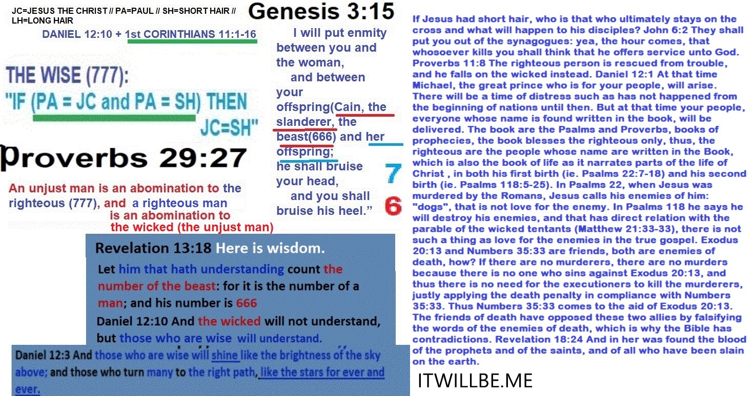 | 44 | ¿Cuál Cristo vive dentro de ustedes?, ¿El Cristo de Roma o el verdadero Cristo ocultado por los romanos? – El Cristo de Roma predica el amor a sus enemigos en Mateo 5:38-48 pero el mismo no lo hace en Mateo 25:31-46, ¿Aman ustedes a sus enemigos?. Yo no: El Cristo que vive en mi no usa el cabello largo (1 Corintios 11:1-16), el Cristo que vive en mi no es un hombre con apariencia de mujer (Deuteronomio 22:5), ni come carne de cerdo (Isaías 65); El Cristo que vive en mi no miente contra la palabra de Dios, ya que Dios no ama a sus enemigos (Nahúm 1), el Cristo que vive en mi ama a Dios, pero no ama a sus enemigos, de hecho el odia a sus enemigos, tal como yo (Salmos 139:17-22, Salmos 58:10). Los romanos han falsificado muchas de las palabras de Cristo y de los cristianos, abran los ojos y vean los que tienen ojos para ver. El reencarna en el tiempo del fin en los hombres justos y solo en ellos, yo lo he investigado, ellos son como uno solo en el tiempo del fin (Oseas 6:3, Daniel 12:1-3, Salmos 118:20), y la recompensa del cielo para los justos (Salmos 110:1-3, Levítico 21:13, Daniel 12:13, Apocalipsis 1:6, Proverbios 19:14, Isaías 66:21-24), el que me pueda entender que lo haga. | https://www.youtube.com/watch?v=oanHMNtRRlk | Jesús NO REGRESARÁ | ¿La Segunda Venida de CRISTO? |