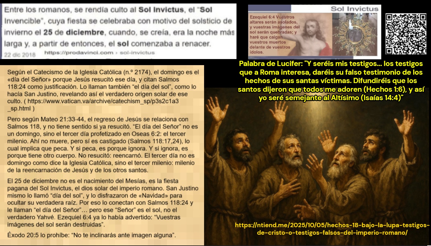 Salmos 112:9 Reparte, da a los pobres; Su justicia permanece para siempre; Su poder será exaltado en gloria. 10 Lo verá el impío y se irritará; Crujirá los dientes, y se consumirá. El deseo de los impíos perecerá.El malvado nunca reconoce que adorar imágenes es un pecado. En cambio, el justo sí lo reconoce, porque su reacción ante la verdad es distinta. Éxodo 20:5 No te inclinarás ante imágenes ni las adorarás. En la otra vida, el justo descubre la verdad y se siente indignado contra los malvados que con falsas enseñanzas le hicieron cometer idolatría. Por eso busca volver al camino de la justicia. Salmos 41:4-5 Dije: ‘Señor, ten misericordia de mí y sana mi alma, porque he pecado contra ti.’ Mis enemigos hablan mal de mí, preguntando: ‘¿Cuándo morirá y será olvidado su nombre?’ Por ese motivo, él está ‘vestido de cilicio’, una expresión que representa su indignación y su dolor por haber caído en la trampa de los engañadores. Él no está buscando arrepentirse, porque ya lo está. Lo que busca es justicia. Apocalipsis 11:3 Daré poder a mis dos testigos para que profeticen durante 1260 días, vestidos de cilicio. Lucas 17:28-30 En los días de Lot, la gente comía, bebía, compraba, vendía, plantaba y construía. Pero el día que Lot salió de Sodoma, llovió fuego y azufre del cielo y los destruyó a todos. Así será cuando el Hijo del Hombre se manifieste. Pero esta penitencia no durará para siempre, sino por 1260 días (un tiempo, tiempos y medio tiempo, donde ‘un tiempo’ equivale a 360 días). Daniel 12:7 Entonces oí al hombre vestido de lino, que estaba sobre las aguas del río. Levantó sus manos al cielo y juró por el que vive para siempre que todo esto terminará después de un tiempo, tiempos y la mitad de un tiempo. Cuando el poder del pueblo santo sea quebrantado, todas estas cosas se cumplirán. https://shewillfindme.wordpress.com/wp-content/uploads/2025/09/idi01-juicio-contra-babilonia-spanish.docx .” “La religión que yo defiendo se llama justicia. █ Yo la encontraré cuando ella me encuentre y me creerá lo que cuento. El Imperio romano ha traicionado a la humanidad inventando religiones para someterla. Todas las religiones institucionalizadas son falsas. Todos los libros sagrados de esas religiones contienen fraudes. Sin embargo, hay mensajes que tienen sentido. Y hay otros, faltantes, que pueden deducirse a partir de los legítimos mensajes de justicia. Daniel 12:1-13 — “”El príncipe que lucha por la justicia se levantará para recibir la bendición de Dios.”” Proverbios 18:22 — “”La esposa es la bendición que Dios le da al hombre.”” Levítico 21:14 — “”Él debe desposar una mujer virgen de su misma fe, porque ella es del mismo pueblo de él, el que será libertado cuando los justos se levanten.”” 📚 ¿Qué es una religión institucionalizada? Una religión institucionalizada es cuando una creencia espiritual se transforma en una estructura de poder formal, diseñada para controlar personas. Deja de ser una búsqueda individual de la verdad o la justicia, y se convierte en un sistema dominado por jerarquías humanas, al servicio del poder político, económico o social. Ya no importa lo que es justo, verdadero o real. Lo único que importa es obedecer. Una religión institucionalizada incluye: Iglesias, sinagogas, mezquitas, templos. Líderes religiosos con poder (curas, pastores, rabinos, imanes, papas, etc.). Textos sagrados “oficiales” manipulados y fraudulentos. Dogmas que no se pueden cuestionar. Reglas impuestas sobre la vida personal de las personas. Ritos y rituales obligatorios para poder “”pertenecer””. Es la forma en que el Imperio romano, y luego otros imperios, usaron la fe para someter a los pueblos. Convirtieron lo sagrado en negocio. Y la verdad, en herejía. Si todavía crees que obedecer a una religión es lo mismo que tener fe, te mintieron. Si todavía confías en sus libros, confías en los mismos que crucificaron la justicia. No es Dios quien habla en sus templos. Es Roma. Y Roma nunca dejó de hablar. Despierta. El que busca justicia no necesita permiso. Ni institución.