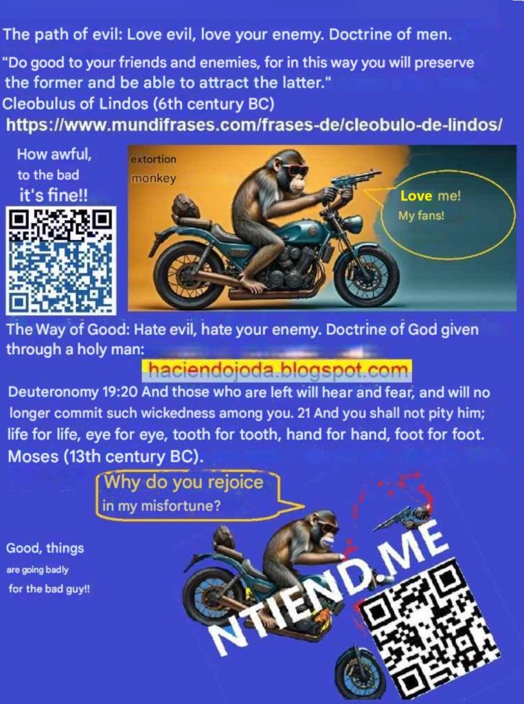 The love of enemies is a deception of the enemy of God, the denial of the law that prohibits the consumption of foods such as pork and bats is also a deception; The Bible has lies from the empire that never converted to the faith that it persecuted, the Roman empire persecuted that faith to destroy it by Hellenizing it. In the version of the gospel falsified by the Romans in Matthew 15:11 Jesus tells us (To deny the law in Deuteronomy 14): “Eat everything because nothing that enters a man’s mouth contaminates him”, the Romans are thus accusing Jesus of something that as a faithful Jew he never said: Like Antiochus IV Epiphanes, they had in mind to Hellenize the true religion. The gospel was Hellenized by the Romans, like the face of Zeus, so they tell us with the images that it was the face of Jesus; and the doctrine of the Greek Cleobulus of Lindos is the one that says: “Love your enemy”, but they tell us that Jesus taught it: And that is a lie. Antiochus IV Epiphanes tortured eight Jews, seven brothers and their mother because they refused to eat pork because God forbids it (Leviticus 11, 2 Maccabees 7). The prophecy in Isaiah 65 confirms two things: 1 # God loves his friends and hates his enemies. 2# The consumption of pork is confirmed prohibited. Antiochus, the Greek king: “Would you like to eat pork so they won’t cut your body to pieces? (2 Maccabees 7:7).” Zeus, the Greek god: “Nothing that I God did is bad if you receive it by praying to me, are they going to refuse to eat pork?, worship me all, those who don’t, go to eternal fire (1 Timothy 4:3 , Hebrews 1:6, Luke 11:28, Matthew 18:7).” The phrase: “Do good to your friends and enemies, because in this way you will preserve the ones and it will be possible for you to attract the others.” It is from Cleobulus of Lindos, “love your enemy is another way of saying the same thing”, but that contradicts the law and the prophets, Jesus respected the word of God, but the Roman persecutors did not.