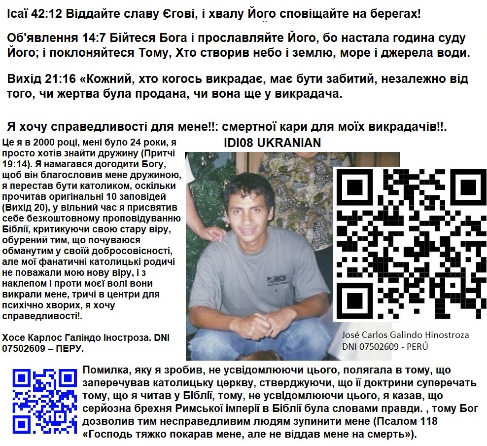 Хосе Карлос Галіндо Іностроза. DNI 07502609 – ПЕРУ.