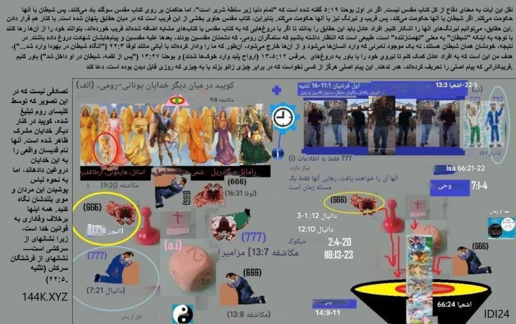 El nacimiento y la muerte de cuarta bestia. La alianza greco-romana por los mismos dioses. (Versión extendida)https://youtu.be/Rh2itE96Oeg https://naodanxxii.wordpress.com/wp-content/uploads/2025/03/idi24-the-plot.pdf .” “دینی که من از آن دفاع می کنم عدالت نام دارد. https://144k.xyz/wp-content/uploads/2025/03/idi24-d8a7d988-d985d8b1d8a7-d9bedb8cd8afd8a7-d8aed988d8a7d987d8af-daa9d8b1d8afd88c-d8b2d986-d8a8d8a7daa9d8b1d987-d8a8d987-d985d986-d8a7db8cd985d8a7d986-d8aed988d8a7d987d8af-d8a2d988d8b1.docx او مرا پیدا خواهد کرد، زن باکره به من ایمان خواهد آورد。 ( https://ellameencontrara.com – https://lavirgenmecreera.com – https://shewillfind.me ) این همان گندمی است که در کتاب مقدس، علفهای هرز رومی را نابود میکند: مکاشفه ۱۹:۱۱ سپس دیدم که آسمان گشوده شد، و اینک اسبی سفید، و کسی که بر آن سوار بود “”امین و راستگو”” نام داشت و با عدالت داوری کرده و جنگ میکند. مکاشفه ۱۹:۱۹ و دیدم که آن وحش و پادشاهان زمین و لشکرهایشان گرد هم آمدهاند تا با کسی که بر اسب نشسته و لشکر او بجنگند. مزمور ۲:۲-۴ “”پادشاهان زمین به پا خاستند، و فرمانروایان متحد شدند علیه خداوند و مسیح او، که گفتند: “”بندهایشان را بگسلیم و طنابهایشان را از خود بیندازیم.”” او که در آسمانها نشسته است، خواهد خندید؛ خداوند آنها را مسخره خواهد کرد.”” حال، کمی منطق ساده: اگر سوارکار برای عدالت میجنگد، اما وحش و پادشاهان زمین علیه او میجنگند، پس وحش و پادشاهان زمین ضد عدالت هستند. بنابراین، آنها نماد فریب دینهای دروغینی هستند که با آنها حکومت میکنند. فاحشه بزرگ بابل، یعنی کلیسای دروغینی که توسط روم ساخته شده است، خود را “”همسر مسیح مسحشده خداوند”” نامیده است. اما پیامبران دروغین این سازمان که بتها را میفروشند و کلمات چاپلوسانه پخش میکنند، اهداف مسیح خداوند و مقدسین واقعی را به اشتراک نمیگذارند، زیرا رهبران فاسد راه بتپرستی، تجرد یا قانونیسازی ازدواجهای ناپاک در ازای پول را برگزیدهاند. مقر مذهبی آنها پر از بتها است، از جمله کتابهای مقدس دروغین که در برابر آنها تعظیم میکنند: اشعیا ۲:۸-۱۱ ۸ سرزمین آنها پر از بتها است، و آنها در برابر کار دستان خود و آنچه انگشتانشان ساخته است، تعظیم میکنند. ۹ پس انسان تحقیر خواهد شد، و مردم پست خواهند شد؛ پس آنها را عفو نکن! ۱۰ به صخرهها برو، خود را در خاک پنهان کن، از حضور باشکوه خداوند و از جلال عظمت او بترس. ۱۱ غرور چشمان انسان فرو خواهد نشست، و تکبر مردان سرکوب خواهد شد؛ و فقط خداوند در آن روز سرافراز خواهد شد. امثال ۱۹:۱۴ خانه و ثروت از پدران به ارث میرسد، اما یک زن خردمند از جانب خداوند است. لاویان ۲۱:۱۴ کاهن خداوند نباید با بیوه، زن طلاقگرفته، زن ناپاک، یا زنی بدکاره ازدواج کند؛ او باید یک باکره از قوم خود را به همسری بگیرد. مکاشفه ۱:۶ و ما را پادشاهان و کاهنان برای خدای خود گردانید؛ جلال و قدرت تا ابد از آن او باد. اول قرنتیان ۱۱:۷ زن، جلال مرد است. در مکاشفه این که وحش و پادشاهان زمین با سوار اسب سفید و لشکر او جنگ می کنند به چه معناست؟ معنی روشن است، رهبران جهان دست در دست پیامبران دروغین هستند که به دلایل روشنی از جمله مسیحیت، اسلام و غیره، اشاعه دهندگان ادیان دروغین حاکم در میان پادشاهی های زمین هستند. همانطور که پیداست، فریب بخشی از کتب مقدس دروغینی است که این همدستان با برچسب «کتاب مجاز ادیان» از آن دفاع میکنند، اما تنها دینی که از آن دفاع میکنم عدالت است، از حق نیکان در فریب نیرنگهای دینی دفاع میکنم. مکاشفه 19:19 آنگاه وحش و پادشاهان زمین و لشکرهایشان را دیدم که دور هم جمع شده بودند تا با سوار بر اسب و لشکر او جنگ کنند.