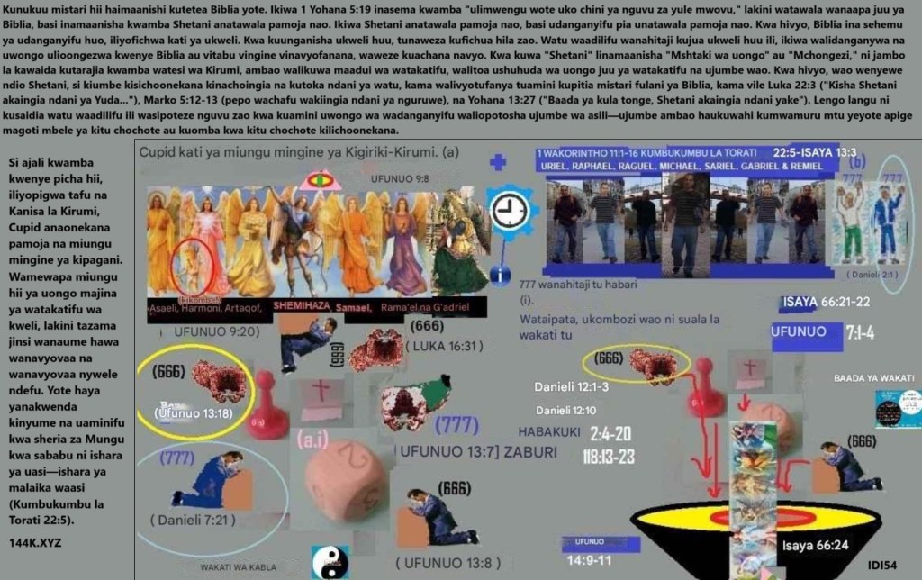Kunukuu mistari hii haimaanishi kutetea Biblia yote. Ikiwa 1 Yohana 5:19 inasema kwamba “ulimwengu wote uko chini ya nguvu za yule mwovu,” lakini watawala wanaapa juu ya Biblia, basi inamaanisha kwamba Shetani anatawala pamoja nao. Ikiwa Shetani anatawala pamoja nao, basi udanganyifu pia unatawala pamoja nao. Kwa hivyo, Biblia ina sehemu ya udanganyifu huo, iliyofichwa kati ya ukweli. Kwa kuunganisha ukweli huu, tunaweza kufichua hila zao. Watu waadilifu wanahitaji kujua ukweli huu ili, ikiwa walidanganywa na uwongo ulioongezwa kwenye Biblia au vitabu vingine vinavyofanana, waweze kuachana navyo. Kwa kuwa “Shetani” linamaanisha “Mshtaki wa uongo” au “Mchongezi,” ni jambo la kawaida kutarajia kwamba watesi wa Kirumi, ambao walikuwa maadui wa watakatifu, walitoa ushuhuda wa uongo juu ya watakatifu na ujumbe wao. Kwa hivyo, wao wenyewe ndio Shetani, si kiumbe kisichoonekana kinachoingia na kutoka ndani ya watu, kama walivyotufanya tuamini kupitia mistari fulani ya Biblia, kama vile Luka 22:3 (“Kisha Shetani akaingia ndani ya Yuda…”), Marko 5:12-13 (pepo wachafu wakiingia ndani ya nguruwe), na Yohana 13:27 (“Baada ya kula tonge, Shetani akaingia ndani yake”). Lengo langu ni kusaidia watu waadilifu ili wasipoteze nguvu zao kwa kuamini uwongo wa wadanganyifu waliopotosha ujumbe wa asili—ujumbe ambao haukuwahi kumwamuru mtu yeyote apige magoti mbele ya kitu chochote au kuomba kwa kitu chochote kilichoonekana.
