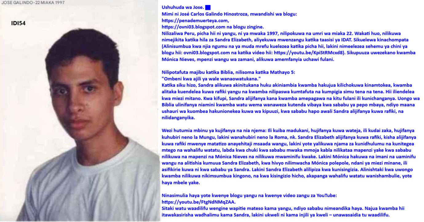 Nilizaliwa Peru, picha hii ni yangu, ni ya mwaka 1997, nilipokuwa na umri wa miaka 22. Wakati huo, nilikuwa nimejikita katika hila za Sandra Elizabeth, aliyekuwa mwenzangu katika taasisi ya IDAT. Sikuelewa kinachompata (Alinisumbua kwa njia ngumu na ya muda mrefu kuelezea katika picha hii, lakini nimeelezea sehemu ya chini ya blogu hii: ovni03.blogspot.com na katika video hii:
