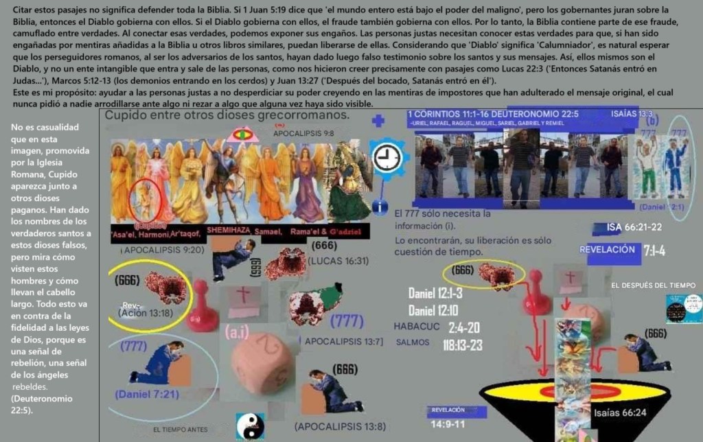 Esta es la verdad en la Biblia que destruye la mentira romana en la Biblia: Apocalipsis 19:11 Vi el cielo abierto, y un caballo blanco, y el que lo montaba se llamaba Fiel y Verdadero, y con justicia juzga y hace la guerra. Apocalipsis 19:19 Vi a la bestia, a los reyes de la tierra y a sus ejércitos, reunidos para hacer guerra contra el que montaba el caballo, y contra su ejército. Salmos 2:2-4 dice: “Se levantaron los reyes de la tierra, y los gobernantes consultaron unidos contra el Señor y contra su ungido, diciendo: Rompamos sus ataduras, y echemos de nosotros sus cuerdas”. El que mora en los cielos se ríe; el Señor se burla de ellos”. Ahora, algo de lógica básica: si el jinete lucha por la justicia, pero la bestia y los reyes de la tierra luchan contra este jinete, entonces la bestia y los reyes de la tierra están en contra de la justicia, por lo tanto, representan el engaño de las religiones falsas que gobiernan con ellos. La ramera Babilonia, que es la iglesia falsa hecha por Roma, se ha considerado a sí misma como «la esposa del ungido del Señor», pero los falsos profetas de esta organización vendedora de ídolos y palabras aduladoras, no comparten las metas personales del ungido del Señor y de los verdaderos santos, porque los líderes impíos han escogido para sí mismos el camino de la idolatría, el celibato o el sacramentar matrimonios no sagrado a cambio de dinero. Su sedes religiosas están llenas de ídolos, incluyendo los falsos libros sagrados, delante de los cuales se arrodillan: Isaías 2:8 Además su tierra está llena de ídolos, y se han arrodillado ante la obra de sus manos y ante lo que fabricaron sus dedos. 9 Y se ha inclinado el hombre, y el varón se ha humillado; por tanto, no los perdones. 10 Métete en la peña, escóndete en el polvo, de la presencia temible de Jehová, y del resplandor de su majestad. 11 La altivez de los ojos del hombre será abatida, y la soberbia de los hombres será humillada; y Jehová solo será exaltado en aquel día. Proverbios 19:14 La casa y las riquezas son herencia de los padres, pero la mujer prudente es de Jehová. Levítico 21:14 El sacerdote de Jehová no se casará con viuda, ni repudiada, ni inmunda, ni ramera; tomará por mujer a una virgen de su pueblo. Apocalipsis 1:6 Y nos ha hecho reyes y sacerdotes para Dios, su Padre; a él sea la gloria y el imperio por los siglos. 1 Corintios 11:7 La mujer es gloria del varón. No soy fanático religioso, entre otras razones, porque no sigo ninguna religión conocida. Yo sigo la justicia. Mi pasión es la justicia. Soy el creador de blogs como lavirgenmecreera.com, y el nombre del dominio (La virgen me creerá) no tiene nada que ver con lo que creen algunos prejuiciosos. No soy católico ni me refiero a la mujer que ellos llaman «la virgen». Tampoco soy evangelista bíblico, porque no defiendo la Biblia. Por el contrario, mis mensajes son incompatibles con los pensamientos de los fanáticos religiosos. El típico fanático religioso es incapaz de admitir que hay mentiras en la Biblia, el Corán o la Torá. A pesar de las contradicciones evidentes, se niegan a aceptar que el Imperio Romano, al perseguir la verdadera religión, la destruyó completamente y nunca permitió su reconstrucción. Las actuales religiones que dicen adorar al Dios de Abraham no son más que remedos acomodados a los intereses de Roma. Por eso sus líderes se llevan tan bien y se abrazan fraternalmente en reuniones interreligiosas. Cualquiera que tenga un mínimo de lógica puede notar que algo no cuadra ahí. «No puede ser cierto que todos los caminos de esas religiones conduzcan a Dios.» Es simple razonamiento: si A dice «x = 1», B dice «x = 2» y C dice «x = 3», luego todos juntos afirman: «Todas nuestras creencias son correctas y complacen a un mismo Dios», ¿Qué se puede concluir? Salvo que seas un imbécil, es evidente que todas sus afirmaciones son falsas. Si una fuera correcta, su portavoz no se llevaría bien con los voceros de las otras dos ni estarían repartiéndose abrazos y besos. Pero entre estafadores siempre hay acuerdos para repartirse influencias, y muchos políticos, al jurar sus cargos con la mano sobre sus «libros sagrados», dejan claro a quién sirven realmente.