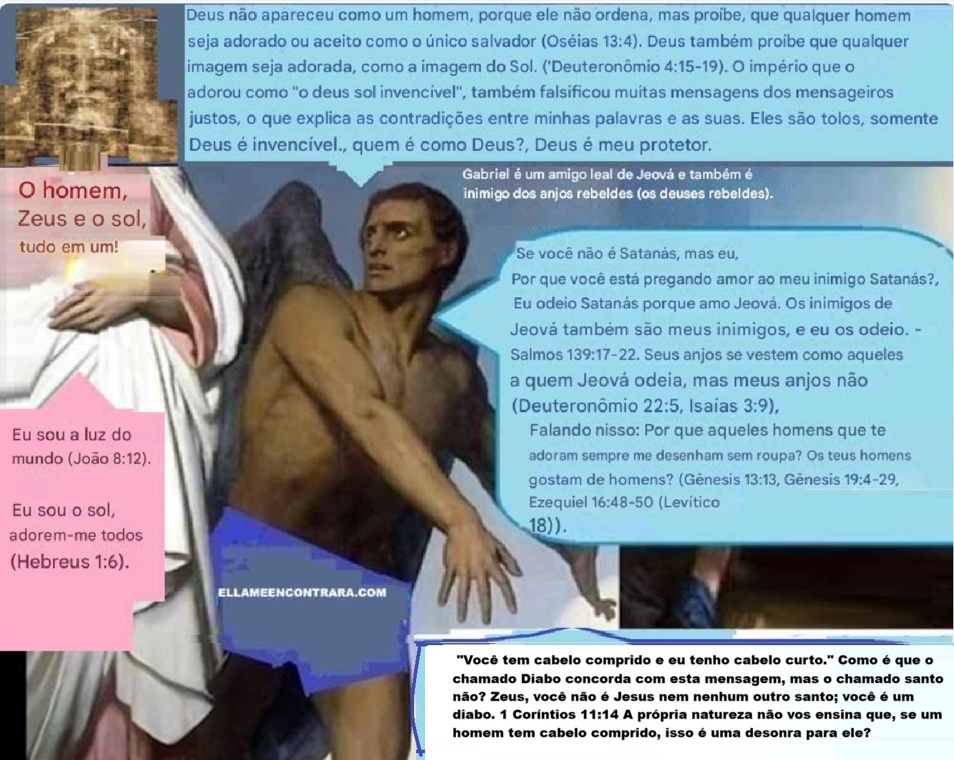 Um amigo fiel de Jeová, como eu, diria ao verdadeiro Diabo: “Você tem cabelo comprido e eu tenho cabelo curto.” Como é que o chamado Diabo concorda com esta mensagem, mas o chamado santo não? Zeus, você não é Jesus nem nenhum outro santo; você é um diabo.