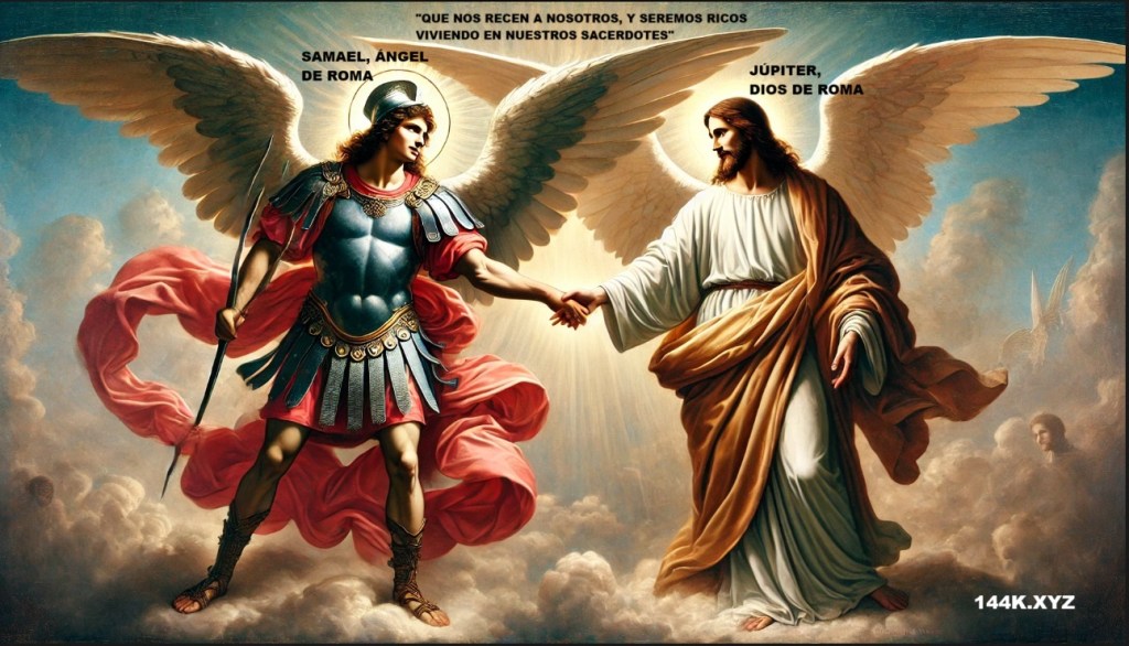 En esta imagen se representa en realidad a: Samael, el ángel de Roma, y a Júpiter, el dios de Roma.