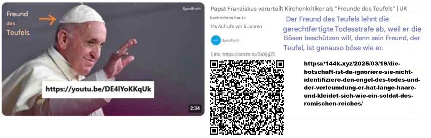 , Die Änderung der Texte der Prophezeiungen, die Rebellion gegen das gerechte Gesetz Auge um Auge und gegen den Zeitpunkt des Jüngsten Gerichts war ein vergeblicher Versuch, der prophezeit wurde: Daniel 7:25 Und er wird Worte gegen den Allerhöchsten sprechen und gegen die Heiligen des Allerhöchsten brechen und wird daran denken, die Zeiten und das Gesetz zu ändern; und sie werden in seine Hand gegeben für eine Zeit und zwei Zeiten und eine halbe Zeit.