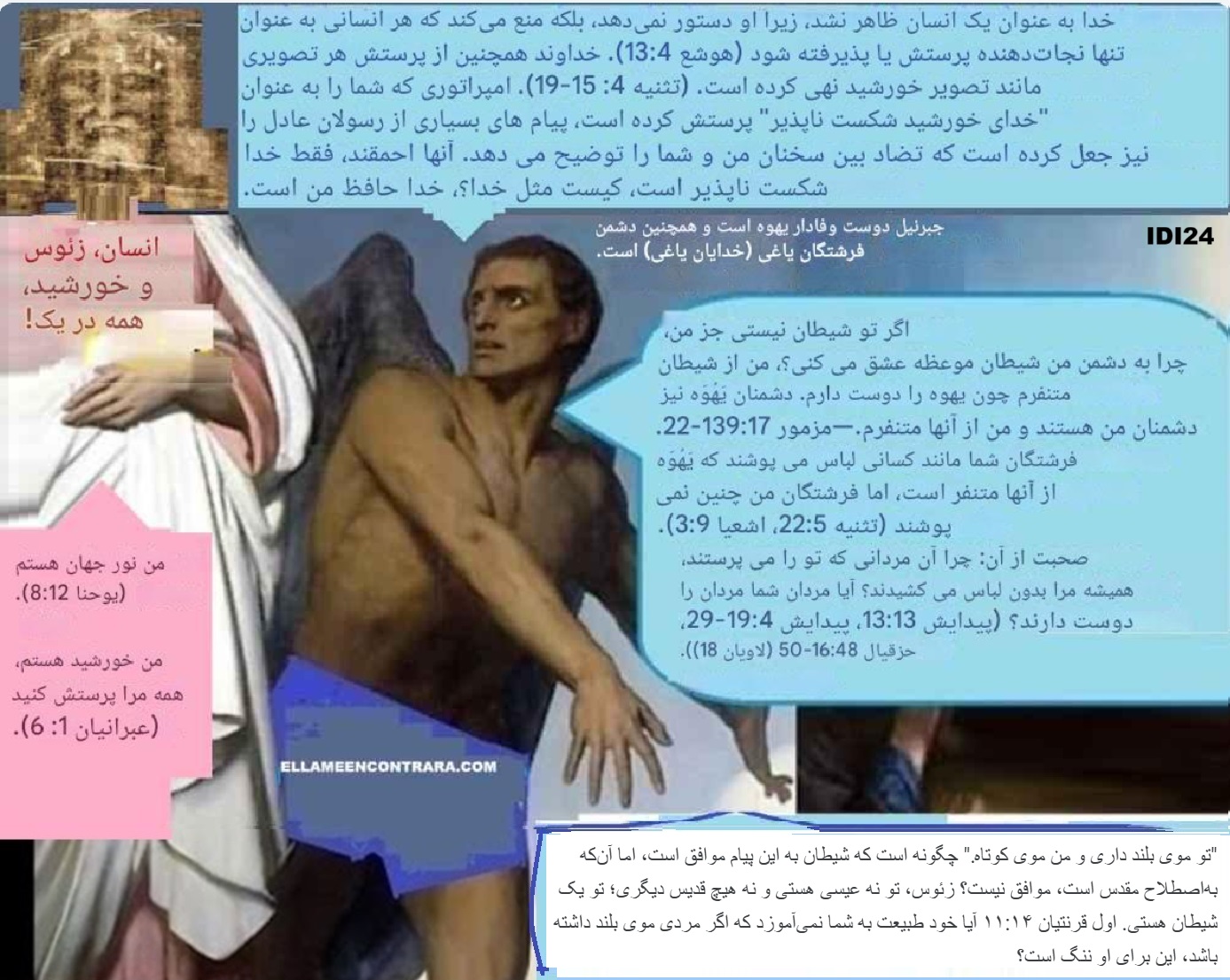 El nacimiento y la muerte de cuarta bestia. La alianza greco-romana por los mismos dioses. (Versión extendida)https://youtu.be/Rh2itE96Oeg https://naodanxxii.wordpress.com/wp-content/uploads/2025/03/idi24-the-plot.pdf .” “چه کسی مسئول شرارت است، “”شیطان”” یا فردی که شرارت میکند؟ فریب توجیهات احمقانه را نخورید، زیرا “”شیطانی”” که برای اعمال شرورانه خود سرزنش میکنند، در واقع خودشان هستند. بهانهی معمول افراد مذهبی فاسد: «من اینگونه نیستم، زیرا این شرارت را من انجام نمیدهم، بلکه شیطانی که مرا تسخیر کرده این کار را میکند.» رومیان با رفتار «شیطانی» خود محتوایی ناعادلانه ایجاد کردند و آن را به عنوان قوانین موسی جا زدند تا محتوای عادلانه را بدنام کنند. کتاب مقدس تنها حاوی حقایق نیست، بلکه شامل دروغها نیز هست. شیطان موجودی از گوشت و خون است زیرا به معنای «تهمتزننده» است. رومیان با نسبت دادن پیام افسسیان ۶:۱۲ به پولس، به او تهمت زدند. مبارزه در برابر گوشت و خون است. در اعداد ۳۵:۳۳ مجازات اعدام علیه گوشت و خون ذکر شده است و فرشتگانی که خدا به سدوم فرستاد، گوشت و خون را نابود کردند، نه «قدرتهای شرور در جایگاههای آسمانی». متی ۲۳:۱۵ میگوید که فریسیان پیروان خود را حتی فاسدتر از خودشان میکنند، که نشان میدهد فرد میتواند تحت تأثیر عوامل خارجی ناعادل شود. از سوی دیگر، دانیال ۱۲:۱۰ میگوید که ناعادلها همچنان ناعادلانه رفتار خواهند کرد، زیرا این طبیعت آنهاست، و فقط عادلها راه عدالت را درک خواهند کرد. تناقض بین این دو پیام نشان میدهد که برخی بخشهای کتاب مقدس با یکدیگر در تضاد هستند و این مسئله صحت مطلق آن را زیر سؤال میبرد. https://naodanxxii.wordpress.com/wp-content/uploads/2025/03/idi24-the-plot.pdf .” “دینی که من از آن دفاع می کنم عدالت نام دارد. https://144k.xyz/wp-content/uploads/2025/03/idi24-d8a7d988-d985d8b1d8a7-d9bedb8cd8afd8a7-d8aed988d8a7d987d8af-daa9d8b1d8afd88c-d8b2d986-d8a8d8a7daa9d8b1d987-d8a8d987-d985d986-d8a7db8cd985d8a7d986-d8aed988d8a7d987d8af-d8a2d988d8b1.docx او مرا پیدا خواهد کرد، زن باکره به من ایمان خواهد آورد。 ( https://ellameencontrara.com – https://lavirgenmecreera.com – https://shewillfind.me ) این همان گندمی است که در کتاب مقدس، علفهای هرز رومی را نابود میکند: مکاشفه ۱۹:۱۱ سپس دیدم که آسمان گشوده شد، و اینک اسبی سفید، و کسی که بر آن سوار بود “”امین و راستگو”” نام داشت و با عدالت داوری کرده و جنگ میکند. مکاشفه ۱۹:۱۹ و دیدم که آن وحش و پادشاهان زمین و لشکرهایشان گرد هم آمدهاند تا با کسی که بر اسب نشسته و لشکر او بجنگند. مزمور ۲:۲-۴ “”پادشاهان زمین به پا خاستند، و فرمانروایان متحد شدند علیه خداوند و مسیح او، که گفتند: “”بندهایشان را بگسلیم و طنابهایشان را از خود بیندازیم.”” او که در آسمانها نشسته است، خواهد خندید؛ خداوند آنها را مسخره خواهد کرد.”” حال، کمی منطق ساده: اگر سوارکار برای عدالت میجنگد، اما وحش و پادشاهان زمین علیه او میجنگند، پس وحش و پادشاهان زمین ضد عدالت هستند. بنابراین، آنها نماد فریب دینهای دروغینی هستند که با آنها حکومت میکنند. فاحشه بزرگ بابل، یعنی کلیسای دروغینی که توسط روم ساخته شده است، خود را “”همسر مسیح مسحشده خداوند”” نامیده است. اما پیامبران دروغین این سازمان که بتها را میفروشند و کلمات چاپلوسانه پخش میکنند، اهداف مسیح خداوند و مقدسین واقعی را به اشتراک نمیگذارند، زیرا رهبران فاسد راه بتپرستی، تجرد یا قانونیسازی ازدواجهای ناپاک در ازای پول را برگزیدهاند. مقر مذهبی آنها پر از بتها است، از جمله کتابهای مقدس دروغین که در برابر آنها تعظیم میکنند: اشعیا ۲:۸-۱۱ ۸ سرزمین آنها پر از بتها است، و آنها در برابر کار دستان خود و آنچه انگشتانشان ساخته است، تعظیم میکنند. ۹ پس انسان تحقیر خواهد شد، و مردم پست خواهند شد؛ پس آنها را عفو نکن! ۱۰ به صخرهها برو، خود را در خاک پنهان کن، از حضور باشکوه خداوند و از جلال عظمت او بترس. ۱۱ غرور چشمان انسان فرو خواهد نشست، و تکبر مردان سرکوب خواهد شد؛ و فقط خداوند در آن روز سرافراز خواهد شد. امثال ۱۹:۱۴ خانه و ثروت از پدران به ارث میرسد، اما یک زن خردمند از جانب خداوند است. لاویان ۲۱:۱۴ ک