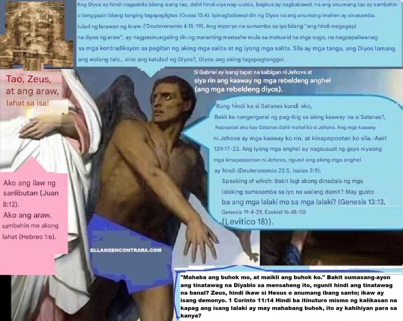Hindi nagkataon lamang na sa larawang ito, na itinaguyod ng Simbahang Romano, lumilitaw si Cupid kasama ng iba pang mga paganong diyos. Ibinigay nila ang mga pangalan ng mga tunay na santo sa mga huwad na diyos na ito, ngunit tingnan kung paano manamit ang mga lalaking ito at kung paano nila sinusuot ang kanilang buhok na mahaba. Ang lahat ng ito ay labag sa katapatan sa mga batas ng Diyos, sapagkat ito ay isang tanda ng paghihimagsik, isang tanda ng mga rebeldeng anghel (Deuteronomio 22:5).