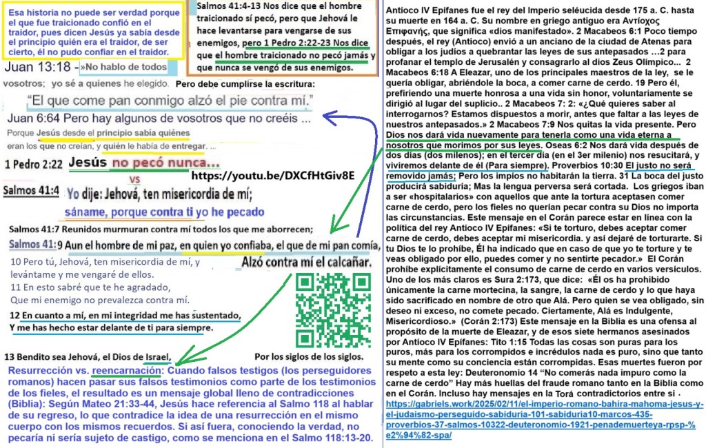 Sin embargo, también dice que fue traicionado para cumplir una profecía del Salmo 41:4-10, donde el traicionado confiesa haber pecado.