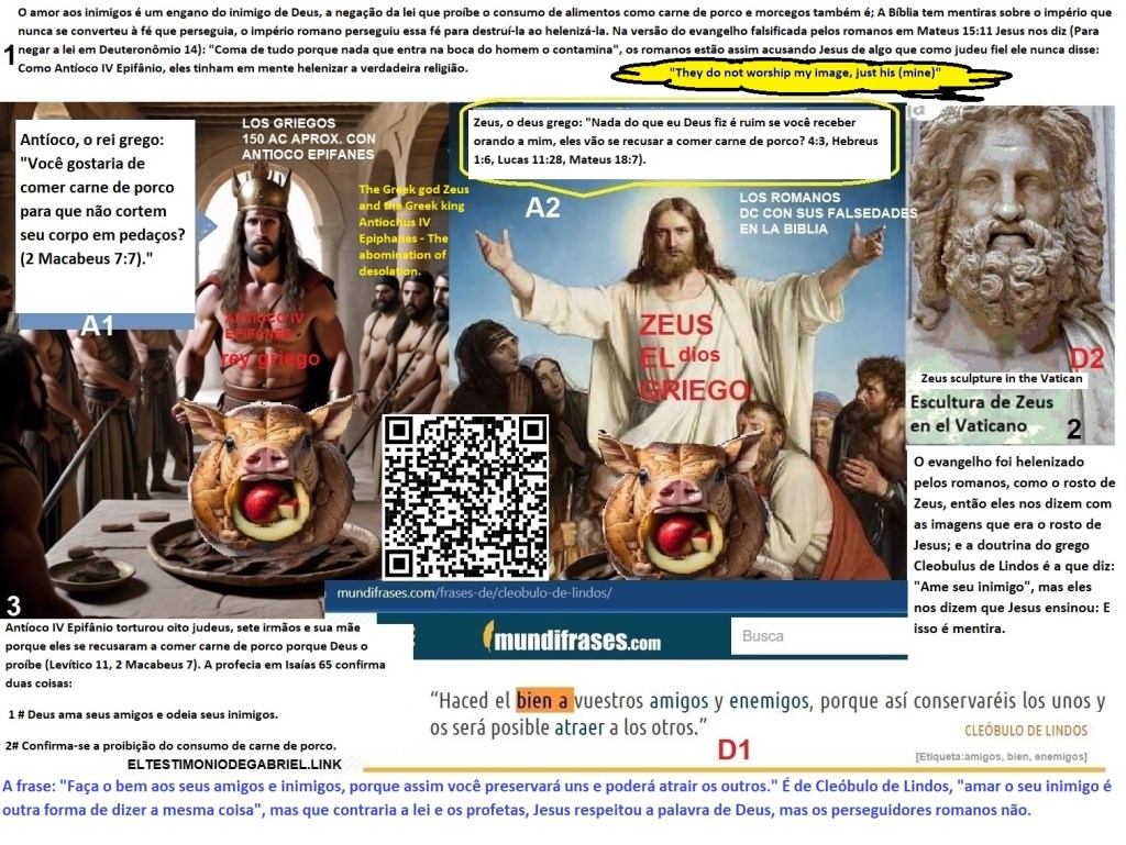@josegalindo1000 52 segundos atrás (editado) Nem os padres nem o papa são santos, os verdadeiros santos foram assassinados, então os usurpadores (os romanos) chegaram com mensagens helenizadas que fizeram passar por mensagens dos santos, ou seja, adulteraram as escrituras, colocaram palavras falsas na boca de Jesus, inventaram histórias e testemunhos e os canonizaram em concílios mentirosos. Você sabia que os adoradores de Zeus não se casavam e que a pedofilia era aceita entre aqueles que adoravam Zeus na Grécia Antiga? Os romanos nunca quiseram abrir mão desses costumes greco-romanos. O que a estátua de Zeus está fazendo no Vaticano? … agora a Igreja de Roma, além de continuar com o celibato, ensina as pessoas a rezar à imagem de Zeus renomeada como “imagem de Jesus”, pregam o consumo de carne de porco, assim como os gregos que perseguiram os verdadeiros santos nos dias de Judas Macabeus, porque com falsificações Roma helenizou a religião que nunca aceitou e, além disso, se você perguntar aos padres católicos por que eles não se casam, eles citam da Bíblia as partes inseridas e falsas do helenismo romano… eles não são os sucessores de Cristo ou dos santos, são dos perseguidores. As pessoas não percebem que são ensinadas a rezar à imagem de um soldado romano com asas? Embora digam dele “é Miguel representado”, na realidade é o caluniador e perseguidor romano representado; o verdadeiro Miguel Arcanjo jamais aceitaria orações a uma imagem sua ou de outro. Roma não se limitou a adulterar a mensagem de Cristo; toda a Bíblia contém calúnias romanas, razão pela qual inconsistências podem ser encontradas em todos os seus livros.