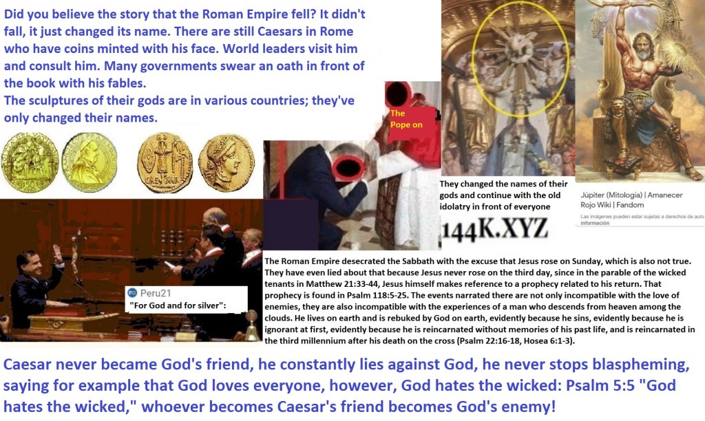 0 seconds ago Hypocrisy at its finest: They do the same with other images, but they say their thing isn’t idolizing images, but “venerating.” They say they don’t worship the image of “the beast” (the Roman persecutor), they say they don’t pray to the statue of the winged Roman soldier with a sword and shield in honor of the Roman Empire that killed Jesus, but to disguise it they labeled him “Saint Michael.” Even so, they say they only worship God… Rome never converted to the faith of Jesus: it falsified it. Rome was always unfaithful to God, which is why it promoted prayer to created beings with a thousand excuses. That’s why the Bible bears traces of its lies: with it, Rome asked the people for submission with “turn the other cheek,” while exchanging the idols of the nations not for the truth, but for its own idols: sculptures of Jupiter and Samael, disguised as images of Jesus and Saint Michael. By the way, the real Jesus and Saint Michael would never, under any pretext, ask that anyone pray to them or their images. Make no mistake: Spain didn’t conquer America; it was the leadership of the Roman Catholic Church that used its puppet government to do so, seeking gold, silver, and new slaves for their idols. These countries remain Roman colonies as long as the Vatican flags fly in their main squares. He who can understand, let him understand.