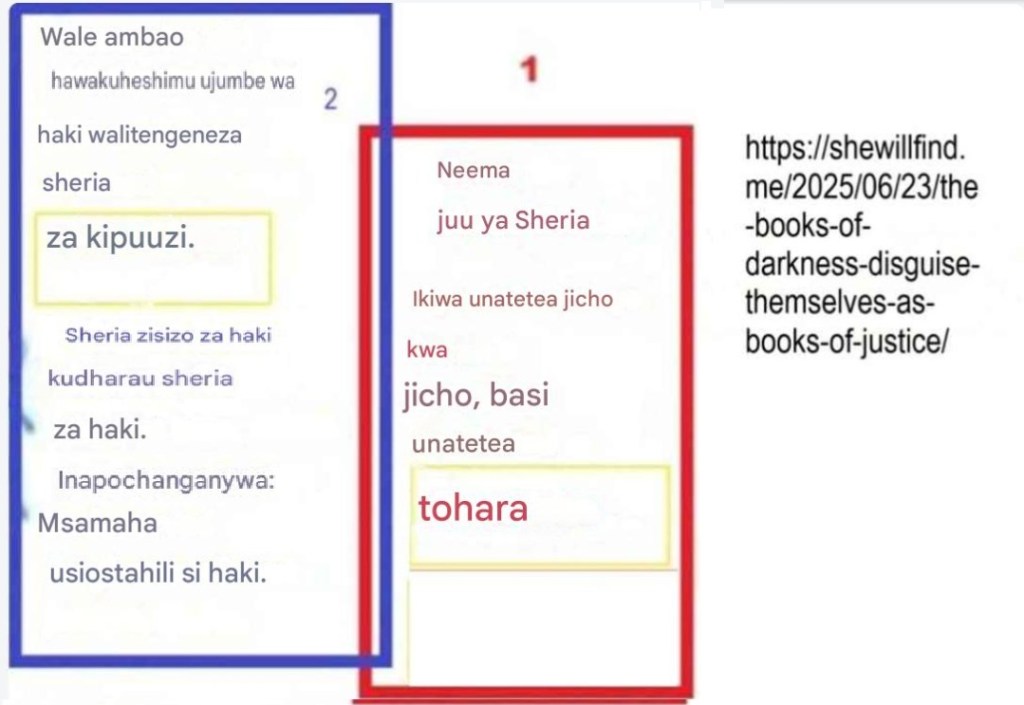 IDI54 Suajili – Nilidhani alikuwa akirogwa lakini mchawi alikuwa yeye. Hizi ni hoja zangu. Dini ninayoitetea inaitwa haki (PDF █ DOCX)