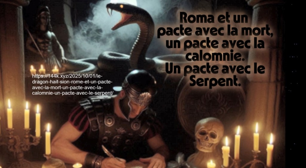 Rome n’était pas sincère. Sa prétendue conversion s’effondre sous le poids d’une énorme contradiction dans la Bible qu’elle créa dans son concile corrompu, pour satisfaire ses propres intérêts plutôt que la justice et la vérité. « Ne crois pas le serpent ; bien sûr qu’il ment — non avec sa propre bouche, mais à travers les voix des persécuteurs romains, qui non seulement falsifièrent l’Évangile et la biographie de Jésus, mais aussi tous les livres anciens écrits avant Lui. Le serpent est une métaphore de la calomnie, et de cette manière l’empire a agi : accusant les justes d’être les auteurs des doctrines de Rome elle-même, comme le refus du droit de ne pas aimer l’ennemi. Oui, ils choisirent de mourir plutôt que de manger du porc (2 Maccabées 7). Pourtant le serpent rendit leur sacrifice vain en promouvant des enseignements contre la loi qu’ils considéraient sacrée (Deutéronome 14:8). Ces mêmes paroles apparaissent dans Matthieu 15:11, 1 Timothée 4:1–6 et ailleurs — faux témoignages des Romains contre les Juifs. Et bien sûr, ils trafiquèrent la Loi elle-même ; ce n’était pas une tromperie facile à détecter. Les Romains n’ont jamais dit : ‘Nous avons créé ces messages.’ Au lieu de cela, ils accusèrent les saints qu’ils avaient tués de les avoir écrits. Apocalypse 12:9 dit : ‘Le grand dragon fut précipité — ce serpent ancien appelé le diable ou Satan, qui séduit toute la terre. Il fut précipité sur la terre, et ses anges furent précipités avec lui.’ Puis j’entendis une voix forte dans le ciel dire : ‘Maintenant sont arrivés le salut, la puissance et le règne de notre Dieu, et l’autorité de son Messie. Car l’accusateur de nos frères et de nos sœurs, qui les accusait devant notre Dieu jour et nuit, a été précipité. Ils l’ont vaincu à cause du sang de l’Agneau et à cause de la parole de leur témoignage ; et ils n’ont pas aimé leur vie jusqu’à craindre la mort. C’est pourquoi réjouissez-vous, cieux, et vous qui habitez en eux ! Mais malheur à la terre et à la mer, car le diable est descendu vers vous ! Il est rempli de fureur, car il sait qu’il lui reste peu de temps.’ »