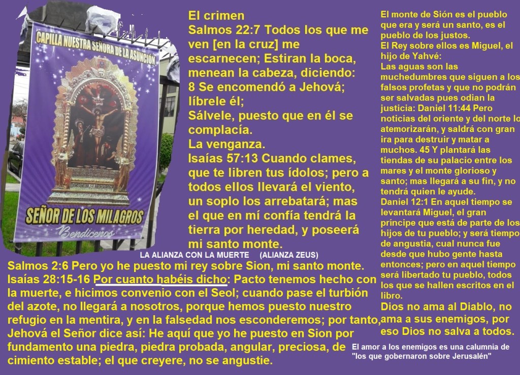 Si el Diablo existe, ¿no querría él que la injusticia reine y que los extorsionadores se salgan con la suya en perjuicio de la gente del bien? Si el Diablo gobierna el mundo y engaña al mundo, ¿no está el Diablo santificado por los falsos profetas? si Dios dictó el ojo por ojo, y toda la vida nos dijeron que el Diablo se rebeló contra Dios, ¿No se opuso el Diablo al ojo por ojo, pero como es un calumniador, no culpó de eso al mensajero fiel de Dios?, es decir, ¿no crees que el imperio romano puso palabras en boca de Jesús al falsificar sus enseñanzas?, ¿No querría el Diablo que la propagación del mal no encuentre resistencia? Mateo 5:38 Oísteis que fue dicho: Ojo por ojo, y diente por diente. 39 Mas yo os digo: No resistáis con mal; antes a cualquiera que te hiriere en tu mejilla diestra, vuélvele también la otra; Si Dios dijo: Ojo por ojo, ¿por qué habría de retractarse? Deuteronomio 19:20 Y los que quedaren oirán y temerán, y no volverán a hacer más una maldad semejante en medio de ti. 21 Y no le compadecerás; vida por vida, ojo por ojo, diente por diente, mano por mano, pie por pie. Si Miguel se levanta a favor de los justos en el tiempo del fin, ¿no es porque Satanás se levantó contra Dios a favor de los que no lo son? El engaño es tan astuto que con ese engaño buscan hacerle creer a la gente de que los justos nunca pecan, y que todos han pecado, y que por lo tanto “nadie es justo”, pero mira como el Diablo al menos admite que no está a favor de los justos, y que nos miente con una falsa idea de que los que no son justos pueden convertirse en justos, son varias mentiras en una sola frase romana, del falso testigo del imperio, atribuida con mentiras a Jesús: Lucas 5:32 No he venido a llamar a justos, sino a pecadores al arrepentimiento. En el pasaje arriba nos dan a entender que es imposible ser pecador y al mismo tiempo ser justo. Sin embargo, hay profecías que desmienten eso: Miqueas 7, el profeta profetizó el pecado de alguien justo. Salmos 41, el profeta también profetizó que el justo peca. Salmos 118 se profetiza que Dios castiga al justo, evidentemente porque pecó primero, sin embargo el pasa por la puerta dónde solo pasan los justos. Daniel 12, el profeta indica que los justos serán purificados, seguramente refiriéndose a dejar de tocar cuerpos de muertos, dejar de comer carne de cerdo o mariscos; y emblanquecidos, evidentemente, limpios de pecado. Y mira el detalle, en Daniel 12 se indica con claridad que los injustos nunca podrán dejar su injusticia. Todo esto solo señala una cosa, sí es posible que los justos pequen, pero la diferencia es que si ellos llegan conocer la verdad, la verdad los hace libres del pecado, pero esto no sucede con los malos. Ejemplo, a un hombre le adoctrinan desde la infancia a postrarse delante de una imagen que los falsos profetas llaman sagrada, él crece y lee Éxodo 20, y deja de hacerlo. Sin embargo, los falsos profetas que adoran esa imagen también leyeron Éxodo 20:5, y no solo continúan adorando imágenes, sino persuadiendo a las masas a que también la adoren. El malo no fue creado para arrepentirse, sino para no arrepentirse y ser castigado de manera definitiva: Apocalipsis 9:20 Y los otros hombres que no fueron muertos con estas plagas, ni aun así se arrepintieron de las obras de sus manos, ni dejaron de adorar a los demonios, y a las imágenes de oro, de plata, de bronce, de piedra y de madera, las cuales no pueden ver, ni oír, ni andar; 21 y no se arrepintieron de sus homicidios, ni de sus hechicerías, ni de sus pecados sexuales, ni de sus hurtos. Proverbios 16:4 Todas las cosas ha hecho Jehová para sí mismo, Y aun al impío para el día malo. La vida se parece a esas grandes películas de ficción, hechas para el entretenimiento, en las cuales cierta gente hace rol de buenos, otros de malos, pero cada cual cumple su función.