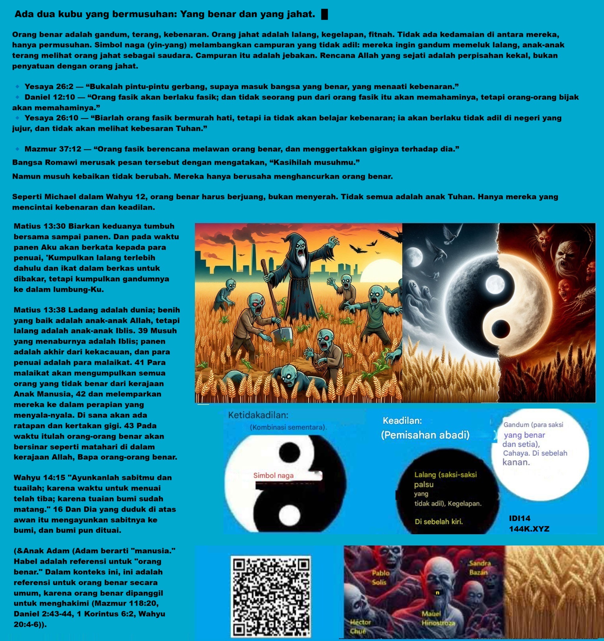 The message in this graphic summarizes the difference between the messages of Zion (blue text) and those of Rome aligned with Sodom (red text). And in this sense, this message is directed precisely to Zion: Isaiah 51:7 Listen to me, you who know righteousness, you people in whose hearts is my law: Do not fear the reproach of men, nor be dismayed by their insults. 8 For the moth will eat them up like a garment, and the worm will devour them like wool; but my righteousness will stand forever, and my salvation through all generations.