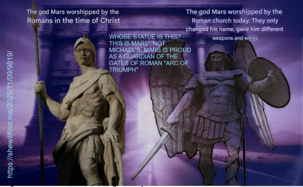 Hanggang ngayon, nagpapatuloy ang gayong pagsamba. Ang kanilang diyos na si Marte ay sinasamba sa ilalim ng pangalang “San Miguel Arkanghel”. Sapat nang pagmasdan siya: siya ay may kasuotang legionaryo, sapagkat siya ay hindi isang matuwid na anghel kundi isang pinarangalan na Romanong mang-uusig.