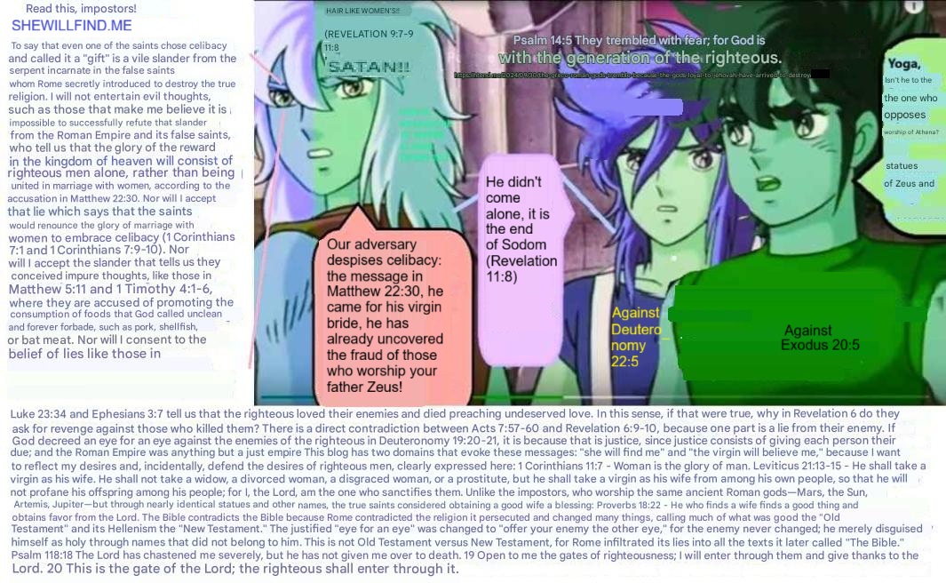Sa mga layuning salungat kay Kristo ay naroon ang Anti-Kristo. Kung babasahin mo ang Isaias 11, makikita mo ang misyon ni Kristo sa Kanyang ikalawang buhay, at ito ay hindi upang paboran ang lahat kundi tanging ang matuwid lamang. Ngunit ang Anti-Kristo ay mapag-angkop (inclusive); sa kabila ng pagiging di-matuwid, gusto niyang sumakay sa arka ni Noe; sa kabila ng pagiging di-matuwid, gusto niyang lumabas ng Sodoma kasama ni Lot… Mapalad ang mga hindi nasasaktan ng mga salitang ito. Ang hindi nasasaktan ng mensaheng ito, iyon ang matuwid, pagbati sa kanya: Ang Kristiyanismo ay nilikha ng mga Romano, tanging isang kaisipang kaibigan ng pag-iisa (celibacy), na angkop sa mga pinunong Griyego at Romano, mga kaaway ng mga sinaunang Hudyo, ang makakapag-isip ng mensaheng tulad ng nagsasabing: «Sila ang mga hindi nagpakarumi sa mga babae, sapagkat sila’y nanatiling birhen. Sila’y sumusunod sa Kordero saan man Siya magpunta. Sila’y binili mula sa sangkatauhan, bilang mga unang bunga para sa Diyos at sa Kordero» sa Apocalipsis 14:4, o isang mensaheng katulad nito: «Sapagkat sa pagkabuhay na muli, hindi na sila mag-aasawa ni papag-aasawahin, kundi sila’y magiging tulad ng mga anghel ng Diyos sa langit,» sa Mateo 22:30. Ang parehong mensahe ay tila nagmula sa isang paring Romano Katoliko, at hindi mula sa isang propeta ng Diyos na naghahangad ng pagpapalang ito para sa kanyang sarili: Ang nakasumpong ng asawa ay nakasumpong ng mabuti, at nagtamo ng biyaya mula sa Panginoon (Kawikaan 18:22), Levitico 21:14 Ang babaing balo, o hiwalay sa asawa, o dinungisan, o patutot, ay huwag niyang kukunin; kundi isang dalaga mula sa kaniyang sariling bayan ang kukunin niyang asawa.
