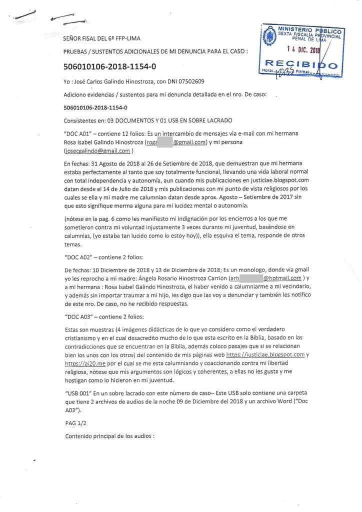 Although he mentions that the details of his “harassment” story are in his blogs and other videos [ 27:40 ], Lidia does not appear in the narrative of this particular recording . The detailed story of Lidia Luque, the medication hidden in the food, and the medical rescue in Ventanilla belongs to the previous video we analyzed ( “What happened to ai20.me? “).