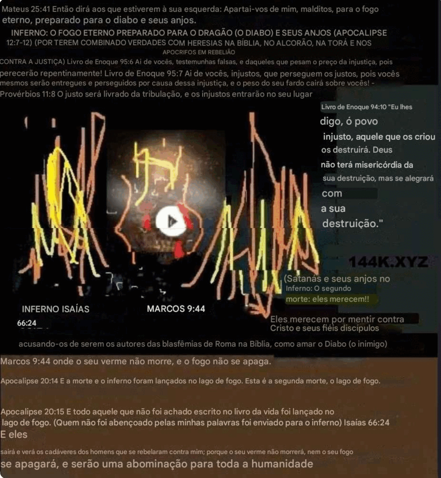 O Salmo 69:21 diz: ‘Deram-me fel por alimento, e na minha sede me deram vinagre para beber’. Isso é citado como uma profecia cumprida em João 19:29-30, quando Jesus bebeu vinagre na cruz. Mas se lermos o contexto completo do Salmo 69, o tom não é de perdão ou amor ao inimigo. O que se segue imediatamente é o julgamento: ‘Que a sua mesa se torne em armadilha’ (v. 22), e continua com maldições e condenações. Não há ‘Pai, perdoa-lhes’ como em Lucas 23:34. Os Evangelhos dizem que Jesus cumpre essa profecia, mas ignoram a sequência de julgamentos que a acompanha. Assim, apresentam uma leitura parcial e manipulada para sustentar uma imagem que não corresponde ao texto original. Por causa desta verdade ignorada pelos falsificadores do evangelho, defendo a pena de morte e não o amor ao inimigo, mas ao amigo.