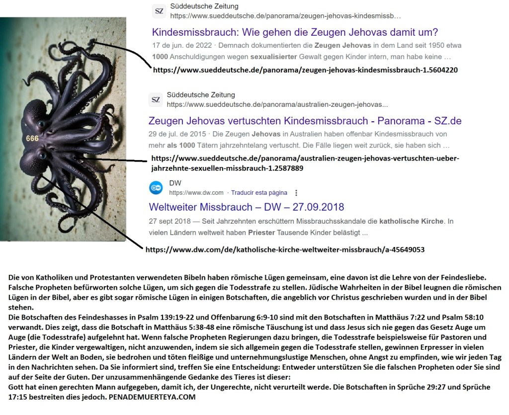 https://144k.xyz/wp-content/uploads/2025/03/idi06-sie-wird-mich-finden-die-jungfrauliche-frau-wird-mir-glauben.docx Was bedeutet es in der Offenbarung, dass das Tier und die Könige der Erde Krieg gegen den Reiter des weißen Pferdes und seine Armee führen? Die Bedeutung ist klar: Die Führer der Welt stecken mit den falschen Propheten unter einer Decke, die die falschen Religionen verbreiten, die aus offensichtlichen Gründen in den Königreichen der Erde vorherrschen, darunter Christentum, Islam usw. Diese Herrscher sind gegen Gerechtigkeit und Wahrheit, die Werte, die der Reiter auf dem weißen Pferd und seine Gott treue Armee verteidigen. Wie offensichtlich ist, ist die Täuschung Teil der falschen heiligen Bücher, die diese Komplizen mit dem Etikett ‘Autorisierte Bücher autorisierter Religionen’ verteidigen, aber die einzige Religion, die ich verteidige, ist die Gerechtigkeit, ich verteidige das Recht der Gerechten, nicht durch religiöse Täuschungen getäuscht zu werden. Offenbarung 19:19 Dann sah ich das Tier und die Könige der Erde und ihre Armeen versammelt, um Krieg zu führen gegen den Reiter auf dem Pferd und gegen seine Armee. Nun etwas grundlegende Logik: Wenn der Reiter für Gerechtigkeit steht, aber das Tier und die Könige der Erde gegen diesen Reiter kämpfen, dann sind das Tier und die Könige der Erde gegen die Gerechtigkeit und stehen daher für die Täuschung der falschen Religionen, die mit ihnen herrschen.Un duro golpe de realidad es a “Babilonia” la “resurrección” de los justos, que es a su vez la reencarnación de Israel en el tercer milenio: La verdad no destruye a todos, la verdad no duele a todos, la verdad no incomoda a todos: Israel, la verdad, nada más que la verdad, la verdad que duele, la verdad que incomoda, verdades que duelen, verdades que atormentan, verdades que destruyen.Das ist meine Geschichte: José, ein junger Mann, der in katholischen Lehren aufgewachsen ist, erlebte eine Reihe von Ereignissen, die von komplexen Beziehungen und Manipulationen geprägt waren. Mit 19 begann er eine Beziehung mit Monica, einer besitzergreifenden und eifersüchtigen Frau. Obwohl Jose das Gefühl hatte, dass er die Beziehung beenden sollte, versuchte er aufgrund seiner religiösen Erziehung, sie mit Liebe zu ändern. Monicas Eifersucht wurde jedoch immer stärker, insbesondere gegenüber Sandra, einer Klassenkameradin, die Jose Avancen machte. Sandra begann ihn 1995 mit anonymen Telefonanrufen zu belästigen, bei denen sie Geräusche mit der Tastatur machte und auflegte.